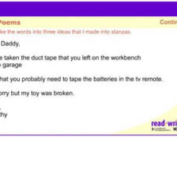 Letter poems are a particularly apt medium for exploring a defining characteristic of poetry-line breaks. As students work to transform narrative-style letters (shown at left) into poetic format, they are encouraged to think carefully about where to end each line. Using the Letter Poem Creator, students engage with the medium of letters and experiment with writing them as poems, with attention to why the lines are broken, where they are broken, and how line breaks affect rhythm, sound, meaning, and appearance.